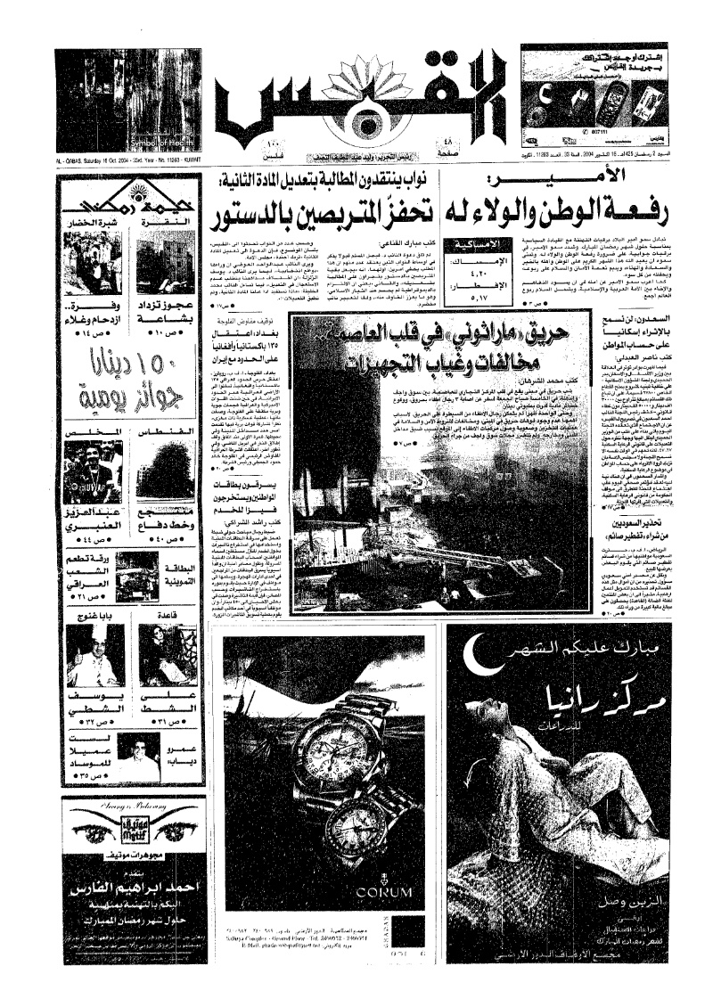 [ص 6] صراع قانوني بين الشيخ علي الخليفة الصباح وجريدة القبس الكويتية